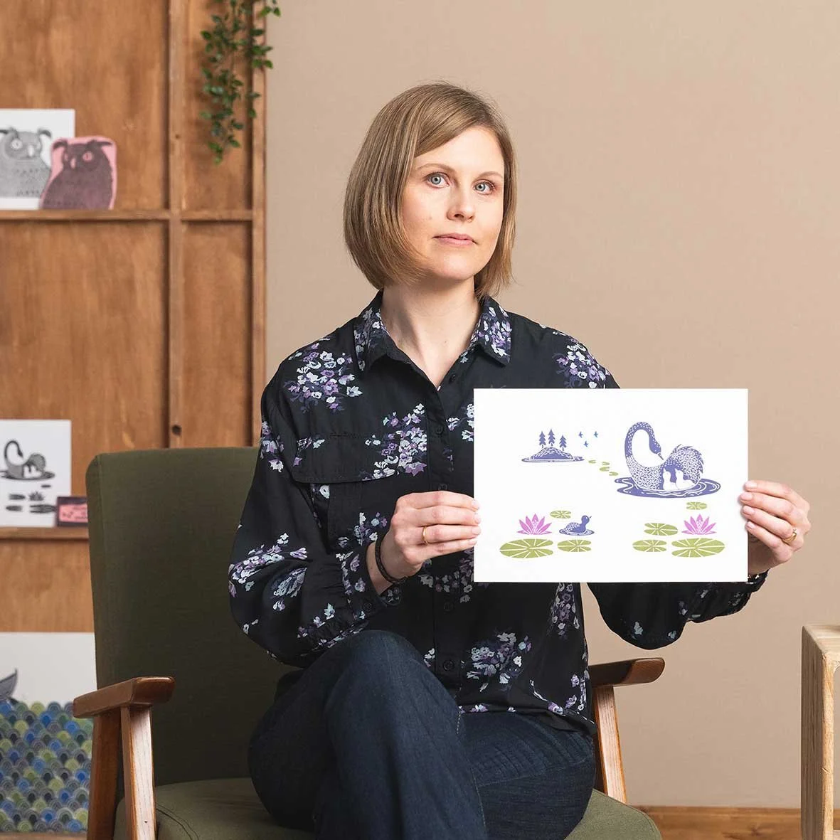 I create hand-carved rubber stamps and print them by hand. All of the designs are my own, and I also teach beginner courses.